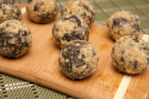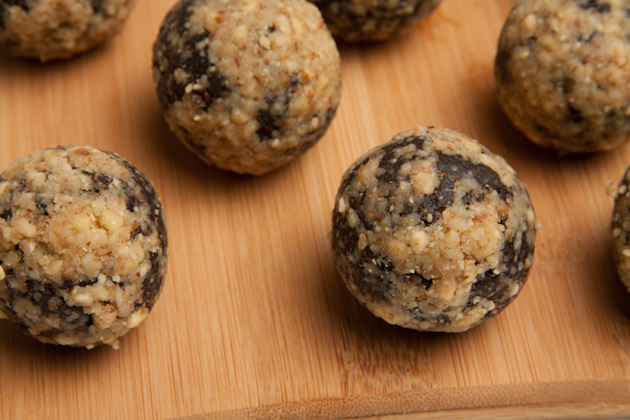 One at a time, place a fifteen in your hand, sprinkle crushed walnuts and roll the ball between your hands to make the walnuts stick to the fifteen. Repeat until there is a good coating on the Fifteen.