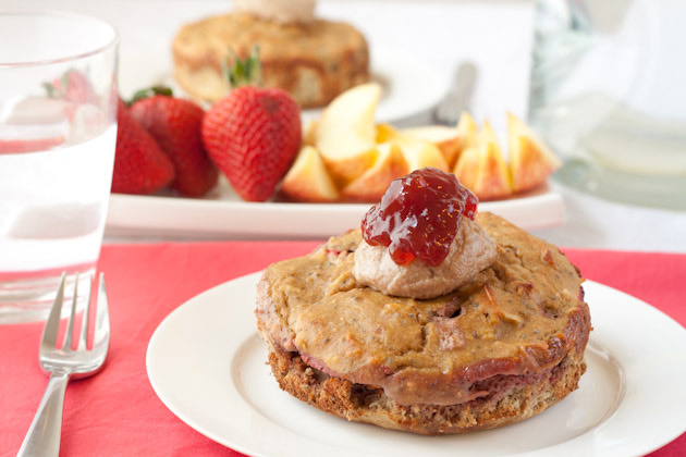 Be sure not to layer the fruit too thick, especially if you intend to remove the cakes from the dishes before serving. If it’s too thick, the cake will break in half. Not a huge problem if it’s just you enjoying it though!