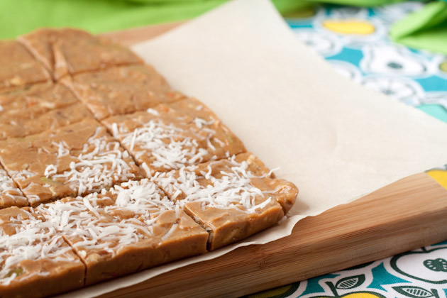After Kevin and I snacked on a couple, I wrapped up each bar in plastic wrap, put them in a ziploc bag, and placed them in the freezer.