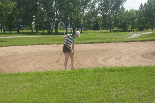 Darn sand pits. I actually enjoy raking them, but getting the ball out is no fun!