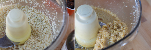 Begin by processing the macadamia nuts. They should be ground to a fine powder without turning the nuts into nut butter. There’s a thin line between the two so make sure you don’t go over it!