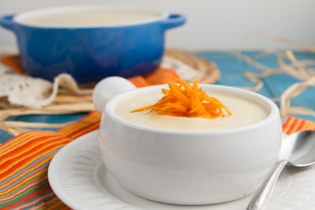 I am big into pureed soups. They’re fun to eat, easy to style in photos, and I find them to be more nourishing than chunky soups. That, and I can hide ingredients in them that Kevin doesn’t know about. For instance… this recipe? Doesn’t have cauliflower in it.