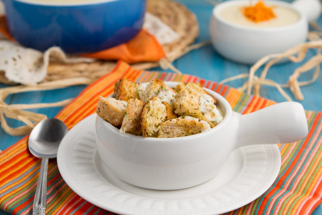 If you’re not on the cleanse with us and want to pump up this soup with a bit of extra pizzaz, head on over to my Happy Days Dairies Inspirations page for my recipe for goat cheese croutons. They’re crazy good and could be added to just about anything. Salads, soups, used as a dipper with hummus… rrr I mean… they’re not that great. Croutons? Gross.