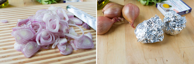 3. Meanwhile, pour remaining olive oil in a medium-sized saucepan. Bring heat to medium-high and add chopped shallots. Saute until tender and beginning to brown, about 6 minutes.