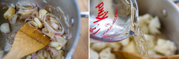 4. Add roasted garlic along with remaining ingredients to the saucepan. Cover and bring to a boil, reduce heat to low and simmer for 15-20 minutes until the cauliflower is softened.