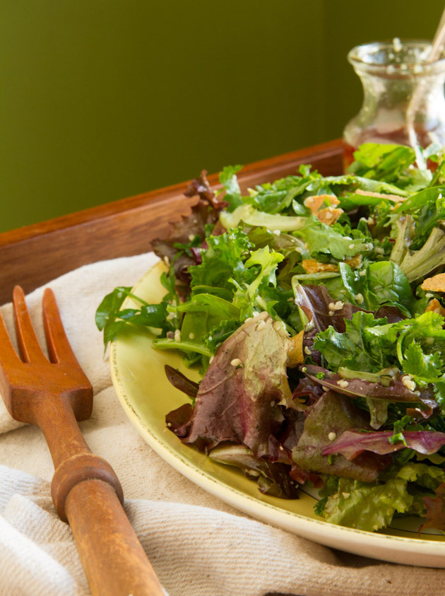 Have you ever ordered a restaurant salad with high hopes of chowing down on a huge bowl of greens and instead, get a measly amount of veggies swimming in a pool of dressing? How they think this is appealing is beyond me.