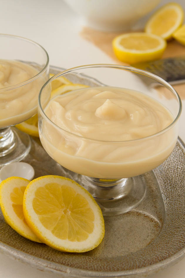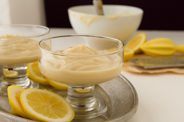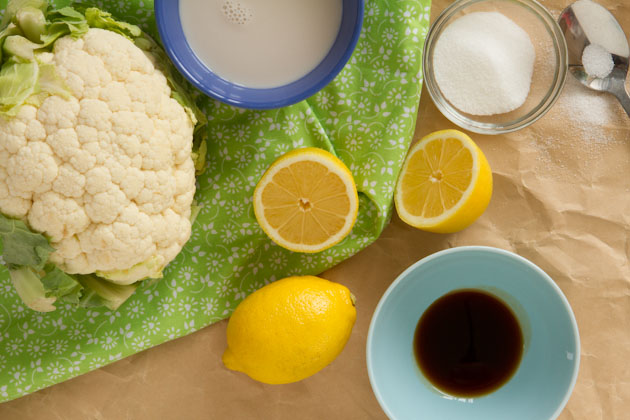 a 130 calorie per serving, vegan lemon pudding made with cauliflower.