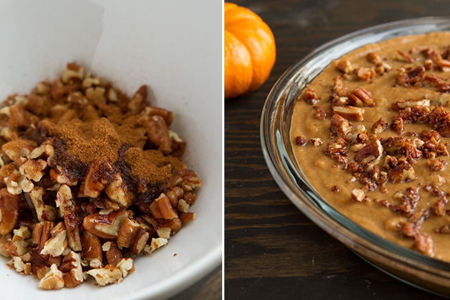 Add topping ingredients to a small bowl and stir until the nuts are coated. Sprinkle the mixture over top of the pie.