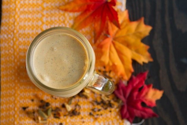 I recreated the Chai-Infused Pumpkin Pie Smoothie (page 28), and adjusted a couple of things here and there for the keto-inclined.