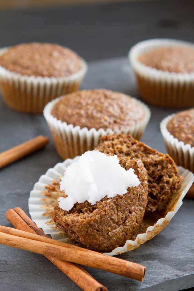 Flourless, fluffy, grain-free muffins made with ground flaxseed, taste just like a cinnamon bun. Naturally high in fiber, low in carbohydrates, sugar-free and paleo.