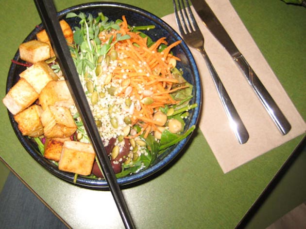 had an amazing salad with tofu, chickpeas, and sprouts,
