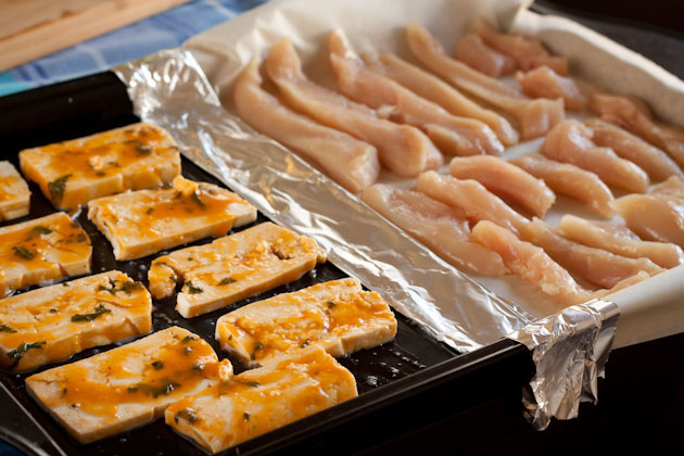 2 lbs. boneless skinless chicken, sliced into ½-inch thick strips or 2 blocks of GMO free firm tofu, pressed and cut into slices