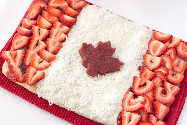 Slowly pour melted coconut butter in the middle of the pizza until the middle portion is covered. Sprinkle with coconut, being sure not to get any on the red portion.