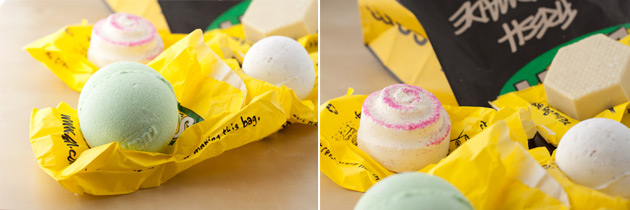 Speaking of bombs, he chose some awesome bath products from Lush, too. Including a new massage oil bar [seriously the best thing ever].