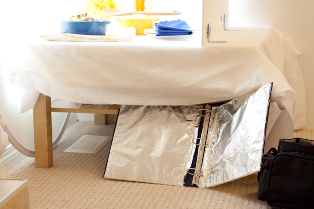 Previously, I was shooting on our dining room table. Every time I took a shot, I had to move the table close to the window, and hope to goodness I didn’t get reflections in the images I was taking.