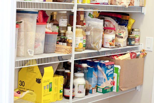 Choose a day of the week that you’ll alternate between organizing your pantry and cleaning out your fridge. I like doing this on Friday mornings, before I go to the grocery store in the afternoon. It only takes 10 minutes or so to check the expiration dates on your condiments, organize things, give the shelves a quick wipe. My favorite fridge cleaning solution: