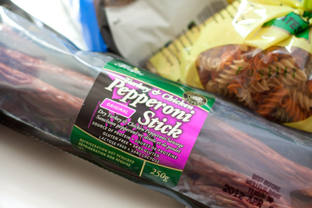 • Turkey or chicken pepperoni sticks. Sticking to a pork free meat stick will cut the potential of the product having trans fats and it will be easier on your digestion!