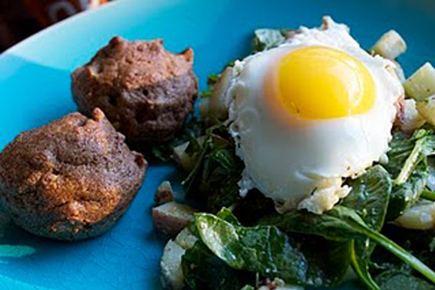 And you can even eat salad for breakfast! This Sunny Side Up Brunch Salad has to be one of my all time favorite recipes. The tangy dressing, the comfort food nature of the warm potatoes, the way the egg yolk oozes through the spinach . . .