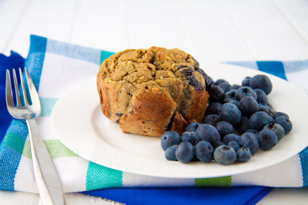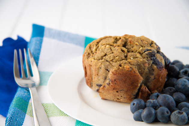 In a separate bowl, whisk wet ingredients. Once incorporated, mix in dry ingredients. Stir until well combined. Add coconut and blueberries and fold in softly.