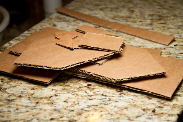 Then drew the measurements and pieces we’d need and started drafting them on a piece of cardboard. That’s around the time that Kevin fell asleep, so I sat watching Sound of Music on Sunday afternoon, cutting out all of the pieces by my lonesome.