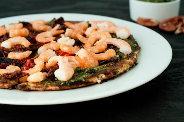 I couldn’t bring myself to throw out the whole pizza, so I scraped off the toppings, added it to a bowl of greens and enjoyed a pesto and shrimp salad instead. There were little pieces of coconut crust in the mix, sort of like soggy croutons at the bottom of an old salad. Mmmm…