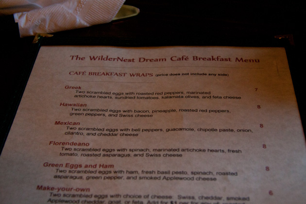 The breakfast menu includes classics like French toast, frittatas and your basic omelet,