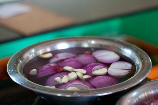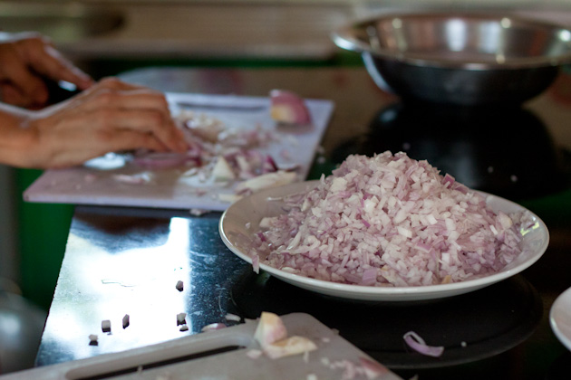 View Nutritional Information (once on page scroll down) To avoid your eyes from watering when cutting up onions, halve them, remove the skin, and place in a bowl of water for a couple of minutes before dicing. I guess it’s all the rage in India. The instructor couldn’t believe I’d never heard of it. Previous to learning this new technique, I’d just  stick out my tongue while I chopped onions. Get your mouth real wide, just let your tongue hang out of your jaw! When I told the instructor this he thought I was joking. It does look rather ridiculous, but I swear it works! Do you have any tricks on avoiding crying when cutting onions?