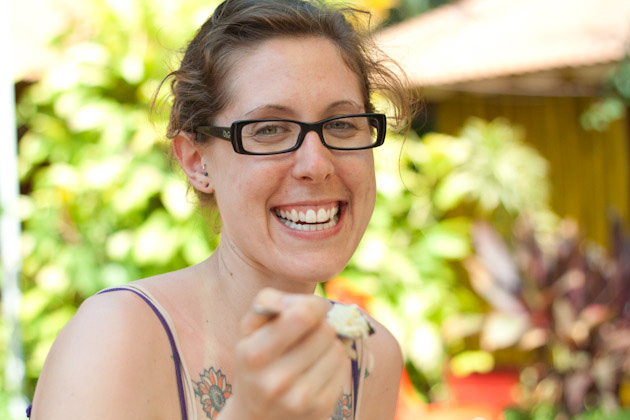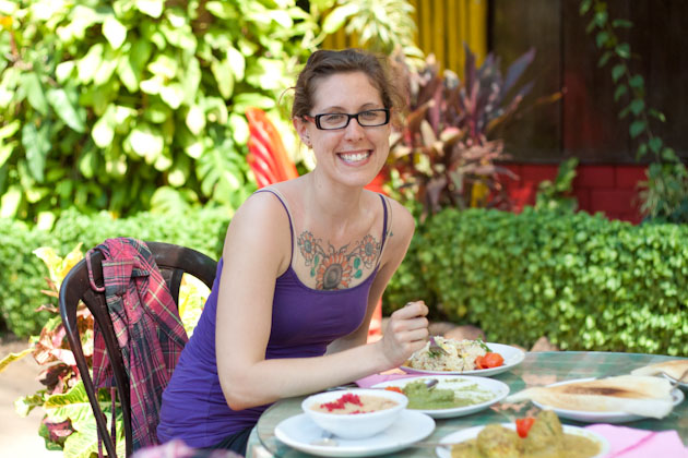 At the ashram, the plates would come fully stocked with the days’ meal. I donated my bread to a neighbor and mashed everything together with my right hand (best EVER!) before going to town on the pile of food before me.