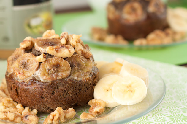 I’ve been enjoying these hemp protein, grain-free cakes for months now and my fascination hasn’t faltered yet. Of all of the ones I’ve made so far; even when compared to chocolate, this one comes out on top. The banana topping is so gooey!