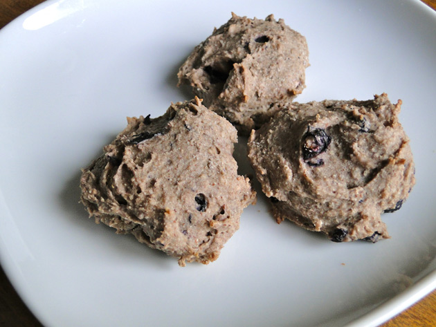 Jenn created this recipe, originally using tahini and carob, it tastes like a brownie! We had some lucuma and of course some blueberries, so decided to make a new version of our loveable pebbles. You can liken these to soft scones…with a caramely, fruity taste, so yummy!