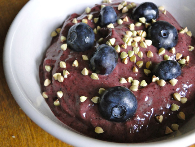 1. Blend all ingredients in food processor until combined. Top with toppings of choice (pictured are raw buckwheat groats).