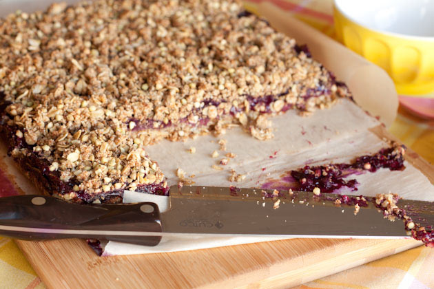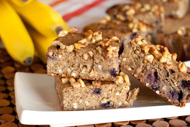 I prepared these bars while Kevin’s family was visiting from Germany last Spring. They’re made with buckwheat, chickpea flour, packed with blueberries and sweetened primarily with mashed banana. They made for a great healthy road trip snack.