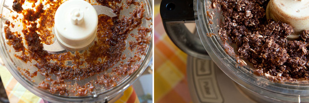 I ended up pureeing the raisins until smooth just so Kevin didn’t know they were in there (he hates dried fruit!). Adding a couple of tablespoons of the raisin soak water helps the base ingredients form together really nicely.