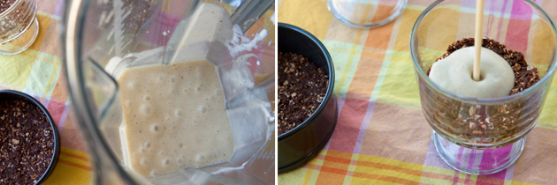 Blend the mixture until smooth, then pour over top of the chocolate base.