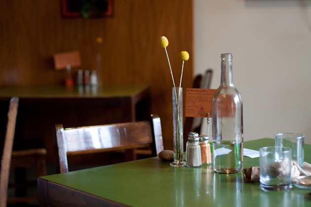 The tables are always decorated beautifully and simply. Today they had little yellow flowers.