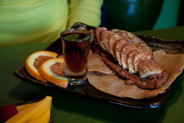 Shelby’s meal came out looking sweet and delicious. I wish they’d make these crepes gluten-free. It’d be SO easy to do. Maybe one day?