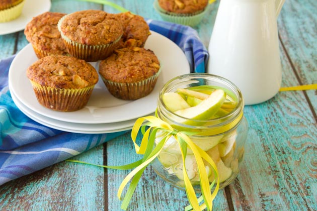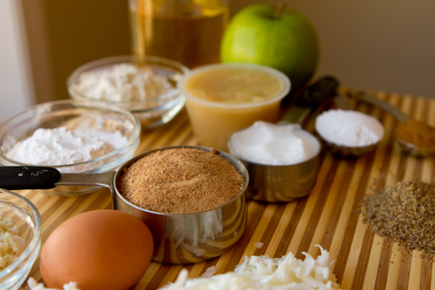 Line up all of your ingredients… I find it’s easier to bake when I have all of my ingredients measured and ready to go. It results in a bit more dishes, but I like being able to just toss everything in a bowl and get the muffins in the oven as soon as possible.
