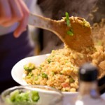 Once the rice grain is tender, but not mushy, remove from the pan and top with sliced green onions. Serve immediately!