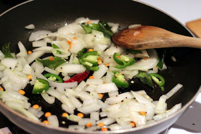 Add oil, heat on medium, add mustard seeds, curry leaves