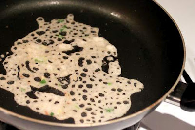 Sprinkle batter onto a well heated non stick pan without making double layers.