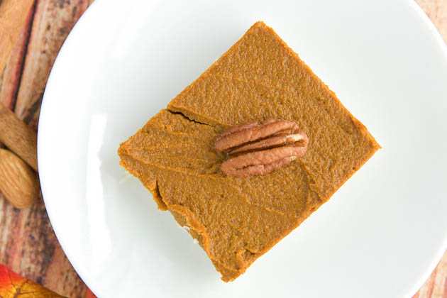 Do your best to make as flat and even as possible. Little finger indents are okay ;) Set the base in the fridge for 20 minutes or so while you prepare the dairy-free pumpkin mousse.
