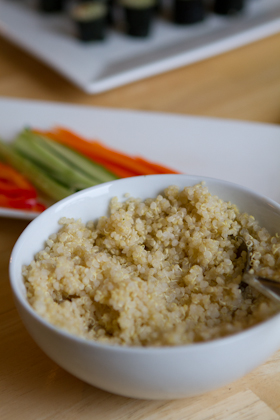 For California roll-ready quinoa, click here for the recipe and nutrition information.