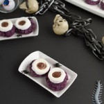 After I made these I realized that I could have gone a step further and made them a healthier by using banana slices for the white section of the eyeballs. I’m kicking myself for not thinking of this option sooner! I can’t tell you how long I racked my brain trying to figure out how to make these eyeballs. Kevin and I stood in the grocery store for what seemed like forever running through the possibilities and not once did banana come up. Eh, there’s always next year!