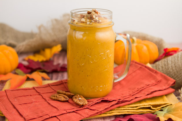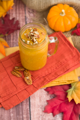 When it came time to make myself a smoothie a couple of days ago, I was reminded of the gorgeous pumpkin and orange cupcakes I spotted on I Adore Food and I went for my own rendition of the unique flavor combo.