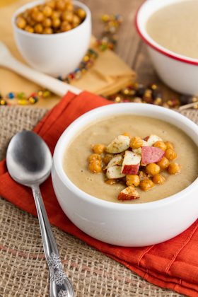 The result was blog-worthy, as Kevin calls it when he taste tests something and smiles from ear to ear. For serious though, this recipe rocks the casbah. The apples make it sweet, the cauliflower makes it ridiculously creamy, it’s just a tad-bit spicy, and has bold curry flavor.