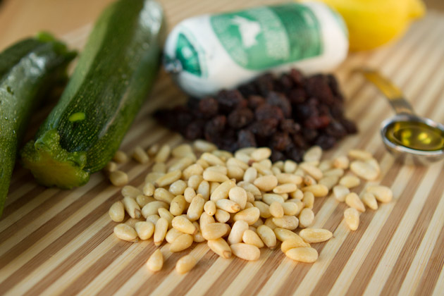 How I haven’t used zucchini slices as wraps before is beyond me. This recipe was so simple to prepare, super delicious and highly versatile. If you’re sensitive to dairy, fill it with hummus or smashed white beans. If you’re allergic to nuts, replace the pine nuts with sunflower seeds. You could even skip out on the dried fruit and use apple chunks or slices instead. Oh the opportunities!