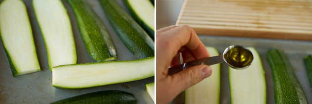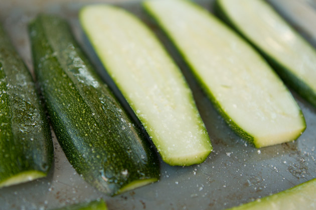 Use your fingers to coat the zucchini as best you can, then sprinkle with a bit of sea salt.