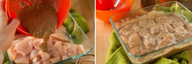 Once your marinade is complete, pour it over the chicken, put a lid on it, and allow it to marinade for at least 24 hours.