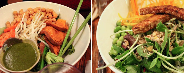 It should come as no surprise that Fresh has a dish for all us grain-free supporting, sweet potato loving, vegetable adoring visitors. One quick read of the menu and I knew what I wanted… the Macro Greens Bowl. I ordered the bowl with Green Dressing, extra sweet potato and a side of chickpeas while Angela had her fix of greens satisfied with her order of an Eat Your Greens Bowl with protein boost mix and tempeh.