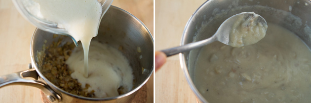 While the cauliflower mixture is boiling, you can saute the onions and mushrooms. The browner, the better.